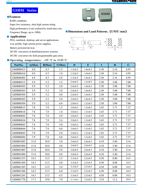 風(fēng)華一體成型電感有HA63、HA65、HA125三個系列,分別對應(yīng)谷景一體成型電感GSHM0603、GSHM0605、GSHM1205三個系列;除了這三個系列,谷景一體成型電感還有26款以上系列型號,還可以定制感值。