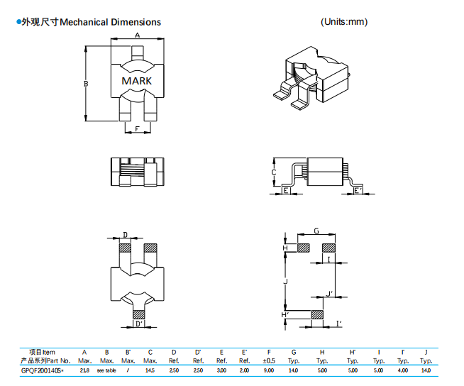 一、扁平線貼片電感GPQF200140產(chǎn)品特性:1、扁平線繞線結構,超低內(nèi)阻2、超大電流承載能力,優(yōu)異的熱穩(wěn)定性3、安裝方式靈活,兼容PCB內(nèi)嵌元件工藝 二、產(chǎn)品應?:1、?電流要求驅(qū)動電路濾波2、升壓或降壓電源電路轉(zhuǎn)換器三、封裝尺寸列表: